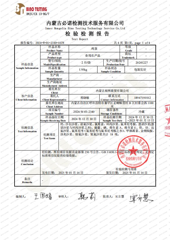 雞蛋檢驗(yàn)檢測(cè)報(bào)告